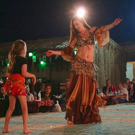 Кульминация вечера — ужин в традиционной бедуинской деревне. Здесь время замирает: мягкий свет фонарей, ароматы специй, уютные подушки под открытым небом и богатый ужин — от восточных закусок до сытных мясных блюд и сладостей.