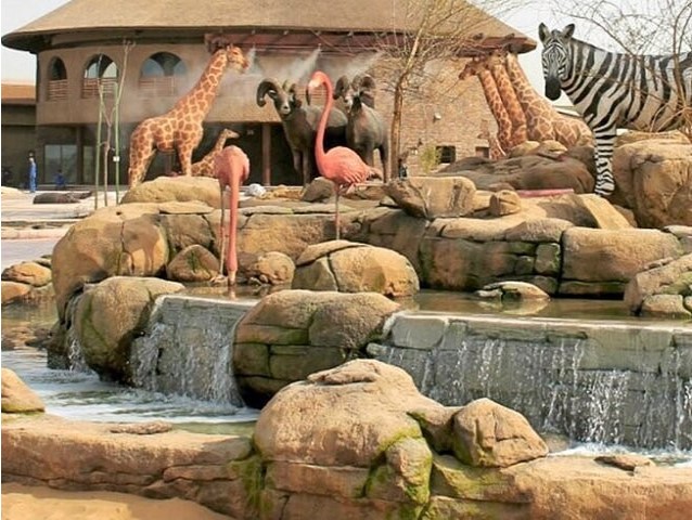 · African Village — с величественными львами, бегемотами, жирафами и зебрами;