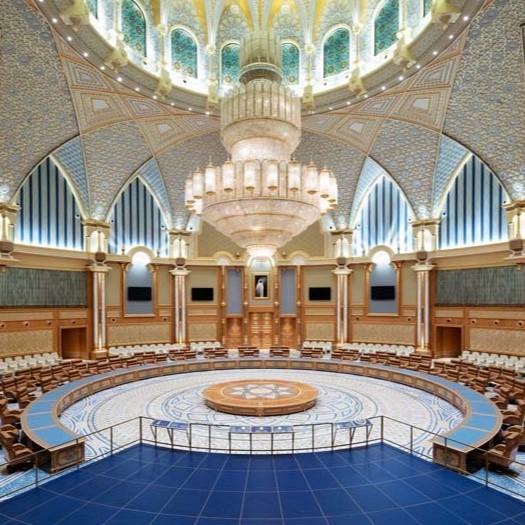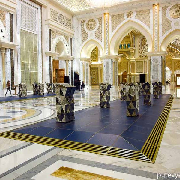 Главный купол дворца — один из самых больших в мире, его диаметр составляет 37 метров, а вес — более 350 тонн. Внутренний зал The Great Hall впечатляет симметрией, изяществом и деталями ручной работы — каждая деталь здесь рассказывает о гордости нации.