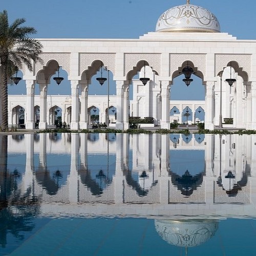 Дворец был построен в традиционном арабском стиле, но с современным размахом: ослепительно белый фасад, вручную инкрустированные мозаики, арки, купола и изысканные орнаменты передают дух исламской архитектуры и величие арабского наследия.