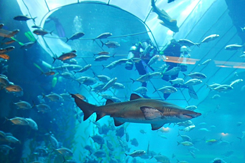 Океанариум предствляет гигантский аквариум с впечатляющей стеклянной панелью длиной более 30 метров и высотой почти 8 метров, которая открывает захватывающую картину жизни океана. Здесь обитают тысячи морских обитателей — от больших акул и скатов до ярких коралловых рыбок и загадочных медуз.
