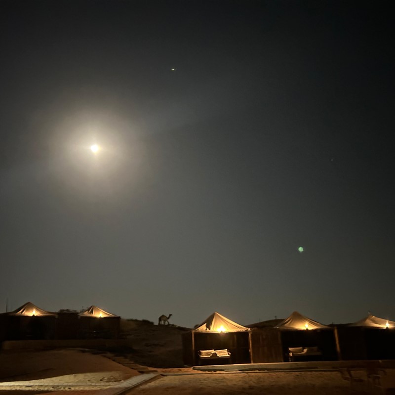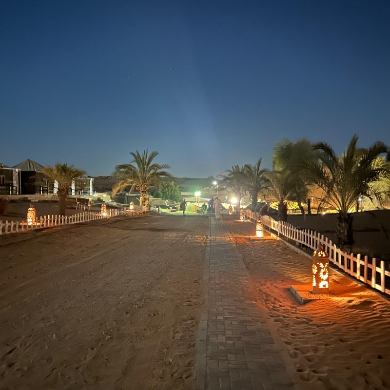 Кульминация вечера — ужин в традиционной бедуинской деревне. Здесь время замирает: мягкий свет фонарей, ароматы специй, уютные подушки под открытым небом и богатый ужин — от восточных закусок до сытных мясных блюд и сладостей.